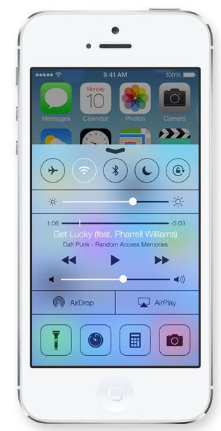 Doch nicht nur das Design wird mit iOS 7 umgestellt, es werden auch neue Funktionen eingeführt. So unter anderem Control Center. Mit Control Center werden alle Kontrollelemente, die Schnellzugriff verlangen, an einem Ort vereint – also unter anderem der Zugriff auf den Flugzeugmodus, WiFi und Bluetooth, die Nicht-Stören-Funktion oder auf Apps wie die Uhr, die Kamera oder den Rechner. Auf das Control Center gelang man mit einem Wisch von der Unterseite des Displays. Die Nachrichtenzentrale wird in iOS 7 auch auf dem Sperrbildschirm bereitstehen, so dass man mit einem Wisch alle Nachrichten sehen kann. Eine neue Today-Funktion in der Nachrichtenzentrale zeigt zudem auf einen Blick eine Zusammenfassung von Details wie Wetter, Verkehr, Terminen und Veranstaltungen. Zum Thema Multitasking verspricht