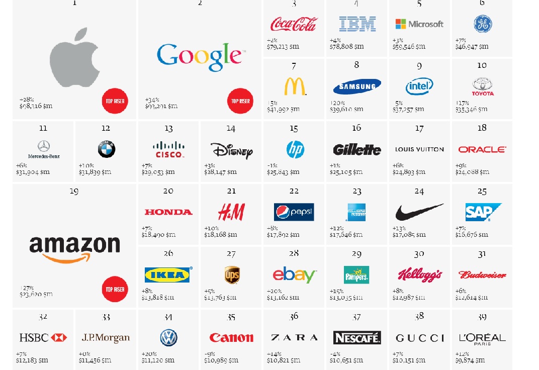 Die gesamte Liste der 100 wertvollsten Marken gibt es