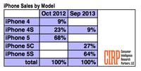 "Allthingsd" berichtet, zeigt jetzt aber eine Marktanalyse von Consumer Intelligence Research Partners, dass dem nicht so ist. Laut der Erhebung, in welcher die US-iPhone-Verkäufe im September analysiert wurden, entfielen mit 64 Prozent fast zwei Drittel aller Käufe auf das Top-Modell 5S, während sich lediglich 27 Prozent für das günstigere iPhone 5C entschieden. Die verbleibenden 9 Prozent entfielen auf das ältere iPhone-Modell 4S.