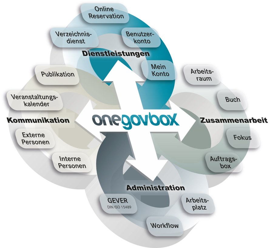 Im Angebot ist das Produkt Onegov Box enthalten, das es Gemeinden ermöglicht, mit wenigen Klicks Webseiten mit E-Government-Funktionalität fürs Internet, Intranet oder Extranet zu erstellen. Der Betrieb des Cloud-Angebots erfolgt in der Schweiz über die Infrastruktur von Procloud. Das Cloud-Angebot bietet laut Initianten Schutz vor Angriffen aus dem Internet und gewährleistet auch die Daten- und Transaktionssicherheit. Durch die FINMA-RS-08/7-Zertifizierung sollen zudem höchste Sicherheitsanforderungen erfüllt werden.