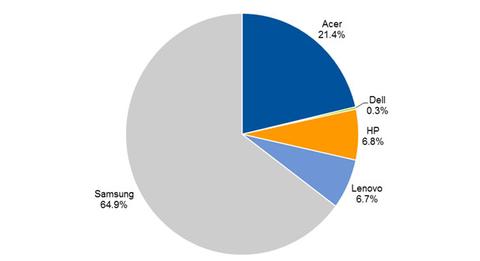 Samsung mit einem Marktanteil von 65 Prozent, vor