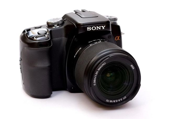 Den Einstieg ins DSLR-Geschäft fand Sony durch die Übernahme des Kamerageschäfts von Konica Minolta. 2006 stellte Sony seine erste eigene Spiegelreflexkamera, das Modell Alpha100 (Bild), vor.