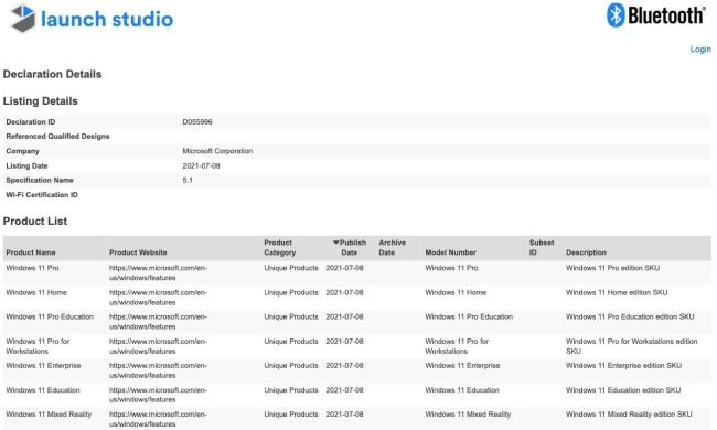 meldet, ist auf der Website der Branchenorganisation Bluetooth Special Interest Group eine vermutlich echte Auflistung der sogenannten Windows 11 SKUs (das Kürzel steht für Stock Keeping Units) veröffentlicht worden, die folgende Versionen aufführt: