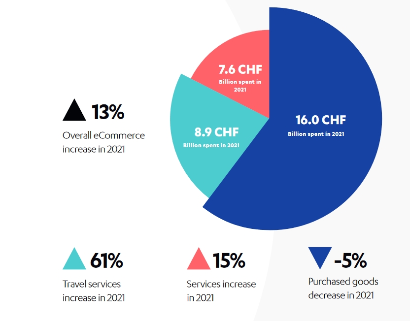 Der Zahlungsanbieter Nets Schweiz hat den Nexi E-Commerce Report veröffentlicht. Für die Studie wurden 1250 Konsumentinnen und Konsumenten nach ihren Online-Einkaufsgewohnheiten befragt. Gemäss der Erhebung haben Herr und Frau Schweizer letztes Jahr im In- und Ausland 32,5 Milliarden Franken für Online-Einkäufe ausgegeben, was einem Zuwachs von 13 Prozent gegenüber 2020 entspricht. Dabei entwickelten sich die einzelnen Bereiche höchst unterschiedlich. So konnte die Reisebranche die Einnahmen um 61 Prozent auf 8,9 Milliarden Franken steigern. Davon entfielen 3,3 Milliarden auf Hotelreservationen (+51%) und 2,9 Milliarden Franken auf Flugtickets (+107%). Aufwärts ging es auch in der Service-Branche, wo ein Zuwachs von 15 Prozent auf 7,6 Milliarden Franken verzeichnet wurde.