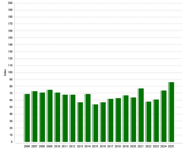 Das folgende Chart zeigt die indexierte Entwicklung der Neugründungen und Konkurse im ausgewählten Kanton. (Index = 100: Stand 2000)