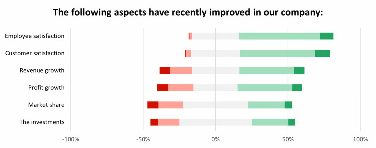 Auch wenn die Zufriedenheit der Mitarbeitenden und Kunden bei den Schweizer Softwareunternehmen steigt, haben Umsatz und Profit bisher nicht wirklich zugenommen. Auch dabei fällt allerdings auf, dass Firmen sich besonders positiv entwickeln, die neue Formen der Zusammenarbeit aktiv fördern und auf Eigenverantwortung und Kompetenzentwicklung setzen.