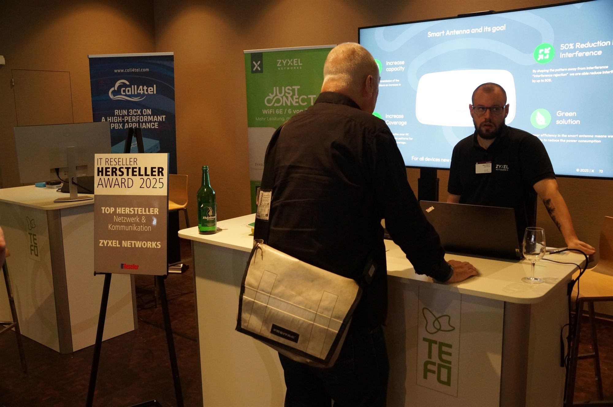 Neben den vielseitigen und teils technisch anspruchsvollen Referaten bot das TEFO auch dieses Jahr einen umfangreichen Ausstellungsteil. Hier präsentierten sich zahlreiche Herstellerpartner und nutzten die Gelegenheit zum Austausch mit anwesenden Partnern und Endkunden. Vertreten waren unter anderem Telekomanbieter wie iWay, Init7, Peoplefone und Sipcall, aber auch Hardwaregrössen wie Logitech, Snom, 3CX und natürlich Zyxel.