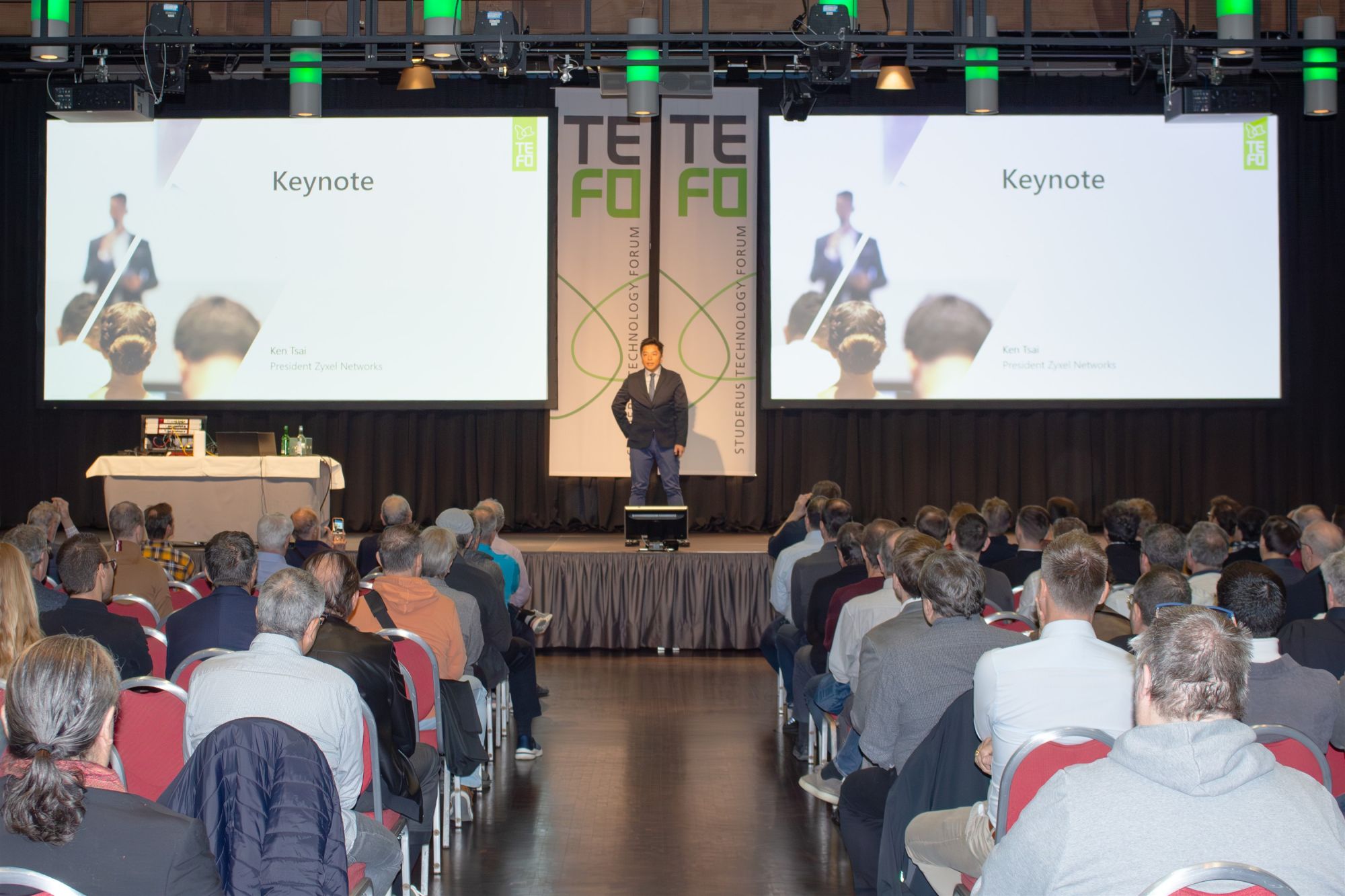 Empfangen wurden die Besucherinnen und Besucher nicht nur von Studerus-Firmengründer und Managing Director Frank Studerus, sondern auch von Ken Tsai, dem Präsidenten von Zyxel Networks, der zum 15. TEFO-Jubiläum eigens aus Taiwan anreiste. Tsai würdigte das Jubiläum mit einer symbolischen Geste und überreichte Frank Studerus eine 15-jährige Whiskyflasche. In seiner Keynote thematisierte er die geopolitischen Herausforderungen in Taiwan, dem Heimatmarkt von Zyxel, und betonte die Widerstandsfähigkeit seines Unternehmens: "Diese Spannungen machen uns resilienter", erklärte Tsai überzeugt.