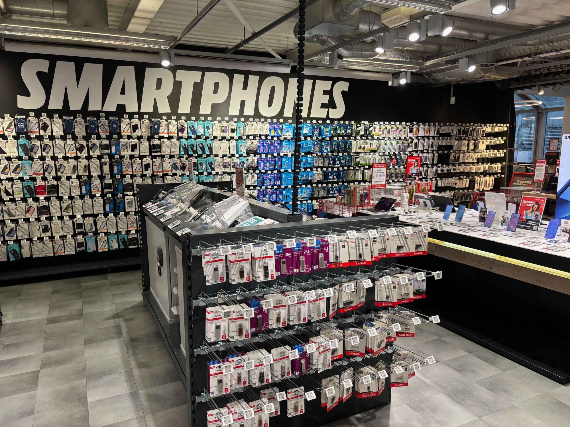 Neu hat der Händler damit 45 Stores in der Schweiz. 25 der altbekannten, riesigen "Core"-Stores mit Ladenflächen zwischen 800 bis 3600 Quadratmetern und 20 neue, deutlich kleinere Läden, die nach dem "Xpress"-Modell konzipiert sind. Der Auftritt der Marke, die hierzulande bis vor etwas mehr als einem Jahr noch für die riesigen Märkte in Industriegebieten bekannt war, hat sich damit massgeblich verändert. Heute sind fast die Hälfte aller Läden kleine Xpress-Stores mit ausgewähltem Angebot, die sich deutlich weniger auf den Verkauf grosser Gerätschaften (TVs, Weissware etc.) konzentrieren. Stattdessen wird der Umsatz mit dem Verkauf kleinerer Geräte, Verbrauchsmaterial und Zubehör (vom Laptop über den Air Fryer bis zu Druckerpatronen und Handy-Ladegeräten) und Services (z.B. Reparaturen) generiert.