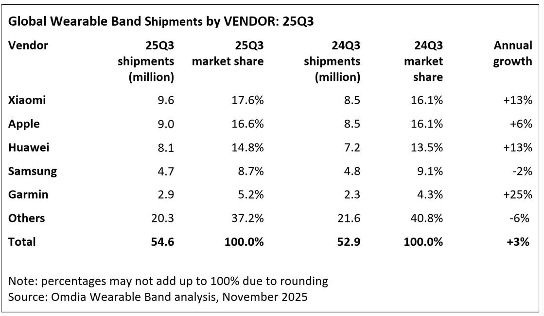 Die Marktforscher von Omdia haben ihre jüngste Erhebung zum weltweiten Wearables-Markt veröffentlicht. Laut der Studie wurden im dritten Quartal rund um den Globus 54,6 Millionen Geräte verkauft, was im Vorjahresvergleich einem Plus von drei Prozentpunkten entspricht.
