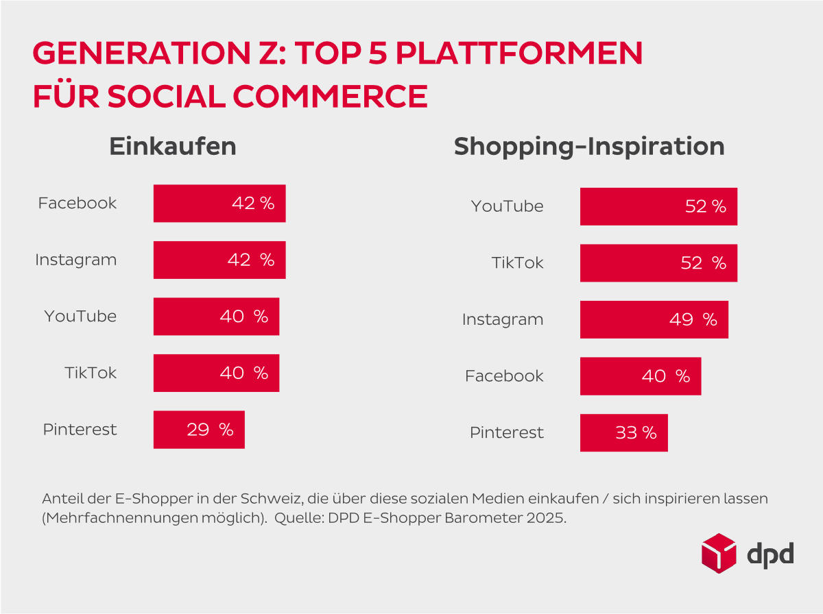 DPD zeigt. Demnach kauft sie gerne direkt in den sozialen Medien, verkauft auf C2C-Plattformen, erwartet von den Händlern KI-Tools und nutzt Community-Funktionen. Aber primär greift die Generation Z häufiger online zu: 82 Online-Käufe pro Jahr tätigen die 18- bis 27-Jährigen laut DPD in der Schweiz durchschnittlich. Das sind 44 Prozent mehr als alle Altersgruppen zwischen 18 und 70 Jahren. Diese kaufen durchschnittlich nur 57-mal im Internet ein. Die Generation Z übertrifft die älteren Semester aber auch beim Verkaufen übers Internet: Über 90 Prozent der jungen Erwachsenen sind auf Plattformen aktiv, auf denen Privatpersonen insbesondere Secondhand-Produkte handeln.